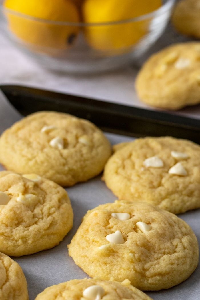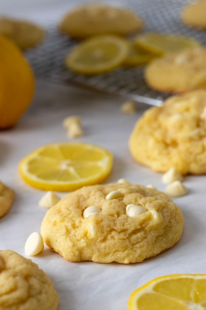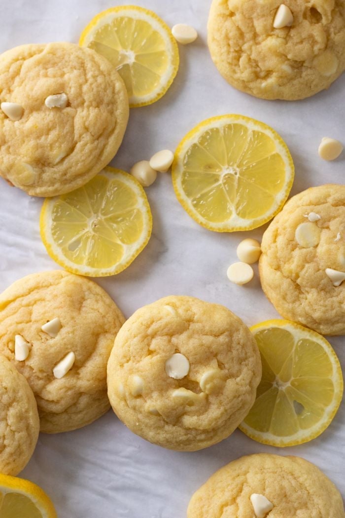 Lemon cookie dough meets white chocolate chips in these easy pudding cookies. Simple to make, and irresistably soft, these are such a treat!