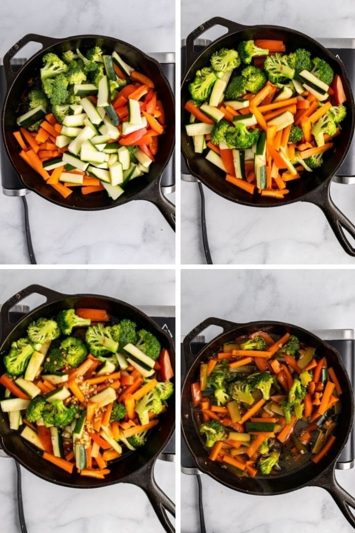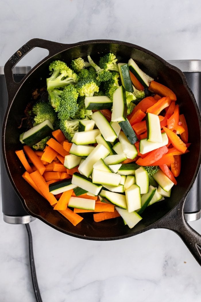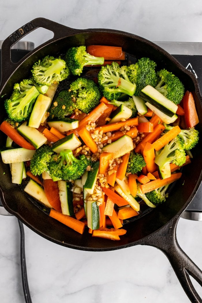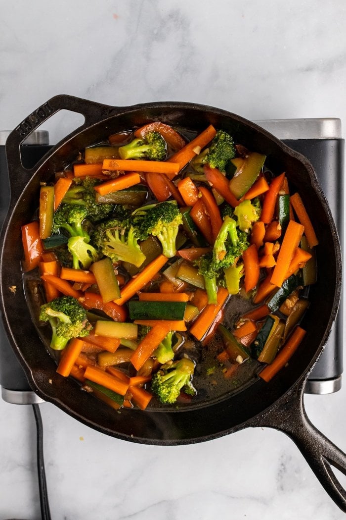 I love simmering the veggies in the teriyaki sauce because it makes them very flavorful and cuts way down on cooking time, but I know this is not the traditional way to cook vegetables for a stir fry. I definitely reccomend trying it this way though if you haven't before!