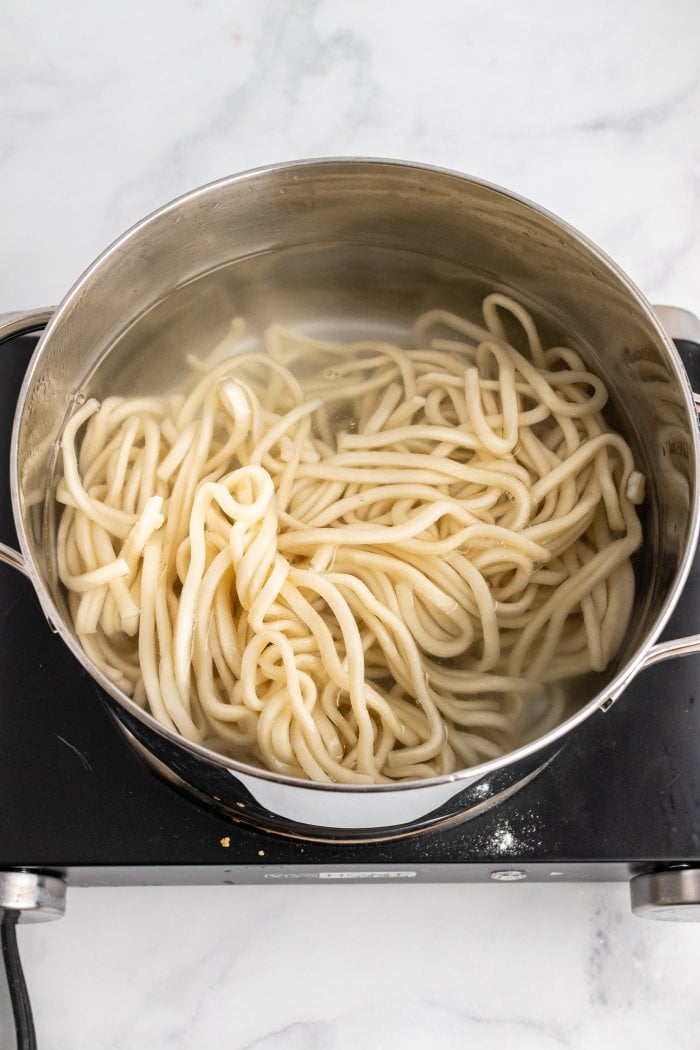 step one: boil the udon noodles according to pacakge instructions - do not overcook