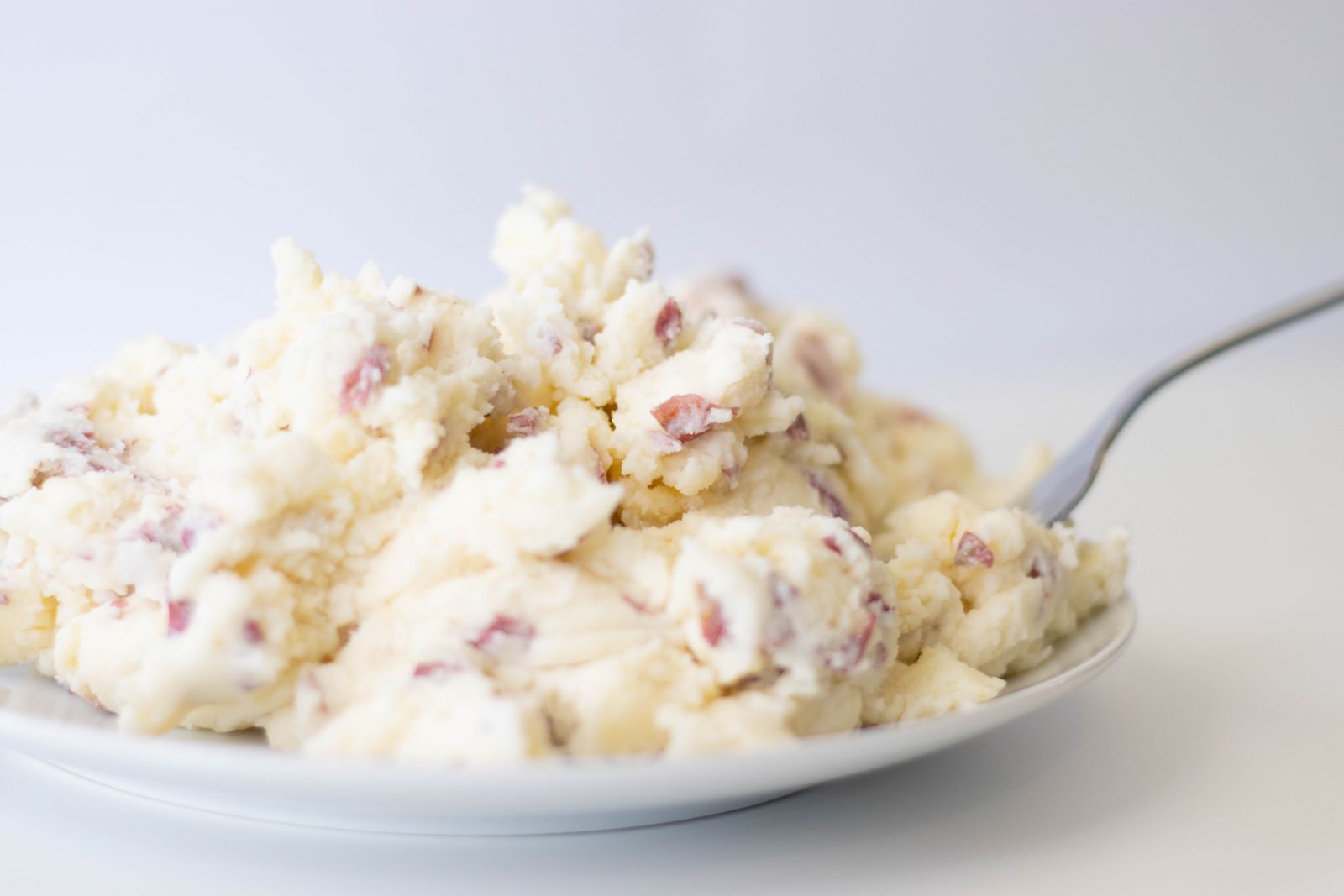 Red potatoes are mashed with their skins to make the most delicious garlic mashed potatoes. A secret ingredient makes these extra creamy and delicious - make extra because second helpings are a given!