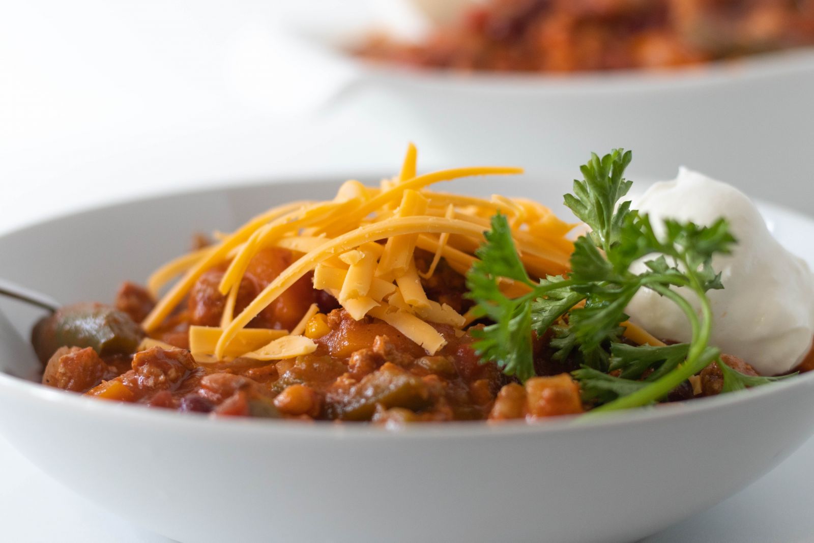 A big bowl of this hearty turkey chili is so comforting and warming, which is exactly what we need as the days grow darker, damper, and colder. Don't get me wrong, I love fall, but mostly because I get to eat meals like this. This chili is packed full of veggies and beans, and has so much flavor you won't even realize it's not beef! Served with a bit of cheese and sour cream, this chili is an amazing comfort food for fall.